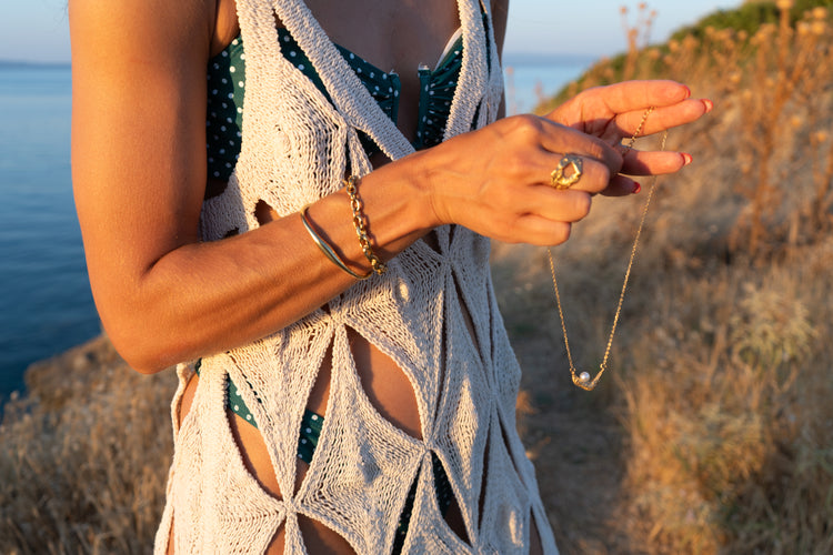 Crafted from hypoallergenic 316L stainless steel and coated with 14K recycled gold using advanced PVD technology, this piece is designed for daily wear β from coffee to cocktails.